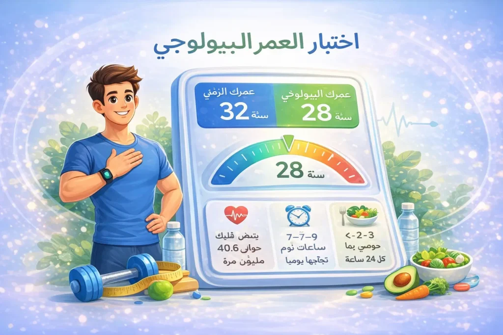 إلى جانب عمرك الزمني، يمكنك تقدير عمرك البيولوجي واكتشاف معلومات صحية مثيرة للاهتمام — مثل العدد التقريبي لنبضات قلبك حتى تاريخ ميلادك، وكم ساعة من النوم تحتاج يوميًا، وعدد الوجبات الموصى بها عادة خلال 24 ساعة. هذه المعلومات تجعل اختبار العمر البيولوجي أكثر من مجرد رقم؛ بل يتحول إلى أداة عملية لتعزيز الوعي الصحي.